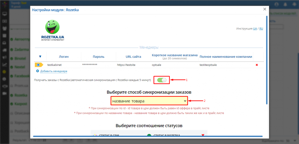 Заповнюєте поля даними (акаунт у Rozetka має бути з правами адміністратора):